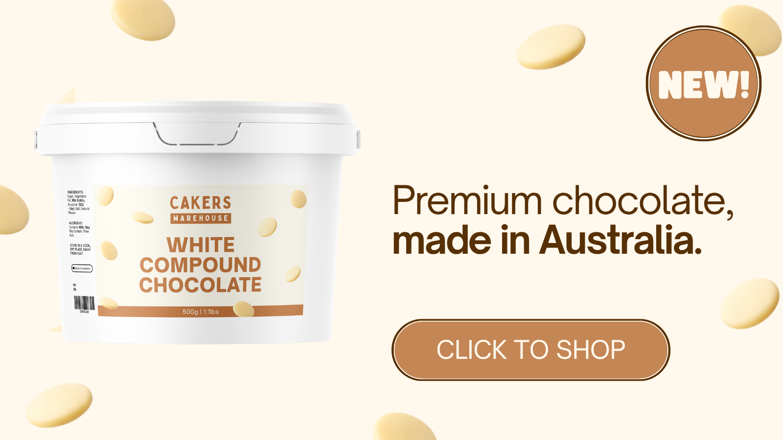 View full detailsCakers White Compound Chocolate is a versatile compound coating chocolate designed to melt evenly and handle easily. Made with vegetable fat instea...