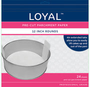 The Pre Cut Parchment Liners 12in Round Size by Loyal are the fastest and most simple way to line your cake tins! The pack comes with conveniently cut rounds to fit your 12in size baking tins and feature 4in tabs to easily lift cakes out of the tins.