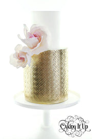 A beautiful geometric design. Add some texture and depth to your creation with this cake stencil. Perfect for double barrel cakes and taller tiers, the stencil pattern area is almost 9 inches high, saving you time and creating a seamless effect from top to bottom.