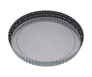 The Crusty Bake Range features perforated holes to allow better airflow to the base when in the oven. This pan also has a removable base.