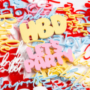 Mini assorted 'cake charms' are available at an additional cost. Simply select your colour and phrase from the drop-down boxes below. Custom charms can also be ordered here.