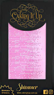 The border cake stencil range has been created to accentuate your cake designs with just a touch of stencilling. Simple and easy to use, these stencils are perfect for adding texture and contrast to the bottom or top of any tier on your cake.