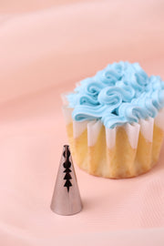 Professional grade piping tip by Loyal Bakeware, used to pipe ruffle patterns with royal icing and buttercream.