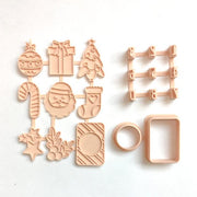 8 x Festive Fondant Stamps (Bauble, Present, Tree, Candy Cane, Santa, Stocking, Stars, Holly) approximately 4cm tall each
